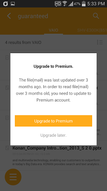 한번에 검색해주는 무료 개인용 멀티-디바이스 검색 서비스입니다. 또한 코난링크는 스마트폰에서도 사용자의 모든 디바이스를 한번에 검색할 수 있으므로, 퇴근 후에도 회사 PC에 있는 파일, 아웃룩 메일, 메일에 첨부된 파일까지 검색해서 다른 사람에게 곧바로
