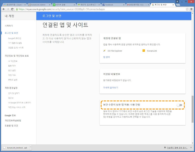 보안 수준이 낮은 앱 허용,